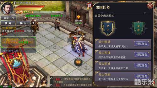 出国任务是指王城边塞“出国大使”处发布的杀敌、除奸、采集、夺旗四种任务。