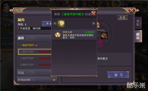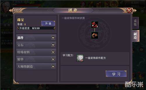 制造需要学习配方后才可以造物品。点击你想学习的配方,点击学习按钮,便可按照途径获取相应的配方。有配方后,满足学习所需的制造等级,再点击学习便学会配方,可以进行制造。