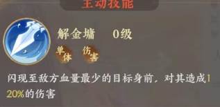 首先是主动技能,直接闪现到对方血量最少的目标身前,造成一次高额伤害,从伤害比例来看,比其他很多门客都要高,再加上自身拥有很强资质和攻击属性,所以主动技能造成伤害依然可观。选择目标为低血量单位,有可能直接击杀掉,当然必须其他队友帮助将血线压制下去。怒气技能同样是选择血量最低单位攻击,冲至前方连续打击4次,每次都能造成中等程度伤害,这样整体计算下来,怒气技能总体输出非常可观。