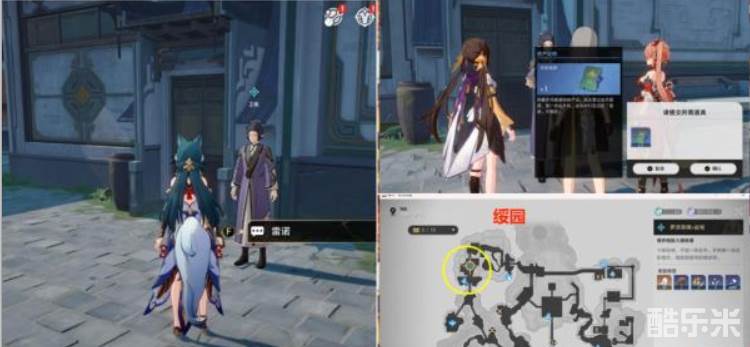 2.然后来到丹鼎司下图位置任务点和雷诺对完话,再和桂乃芬对话后,进入副本。