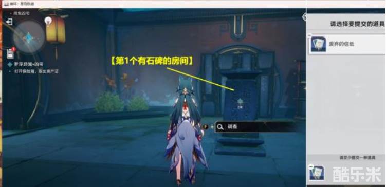 14.然后返回到开始说的第1个有石碑的房间,调查房间中间的石碑,提交废弃的信纸后,可获得1个密码1328。