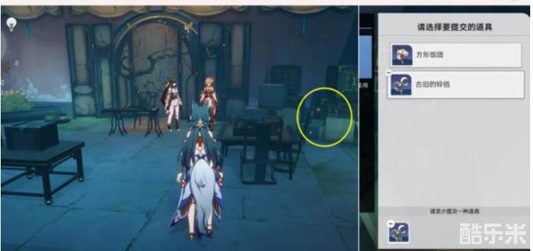 12.上图提交古旧的铃铛后,旁边地上会出现1个小的箱子,然后调查这个小箱子后,提交方形饭团。