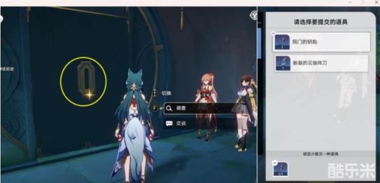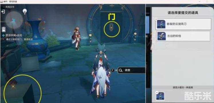 8.接着来到在前面中间位置,调查地上的箱子,然后提交断裂的云骑阵刀,会获得打开门的院门的钥匙。