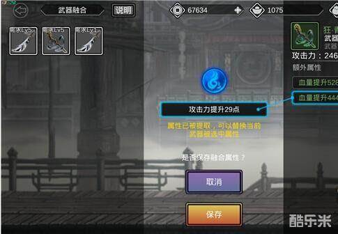 融合后会产生3个属性供玩家自己选择,在选择需要的属性后点击保存就完成了整个升级流程。