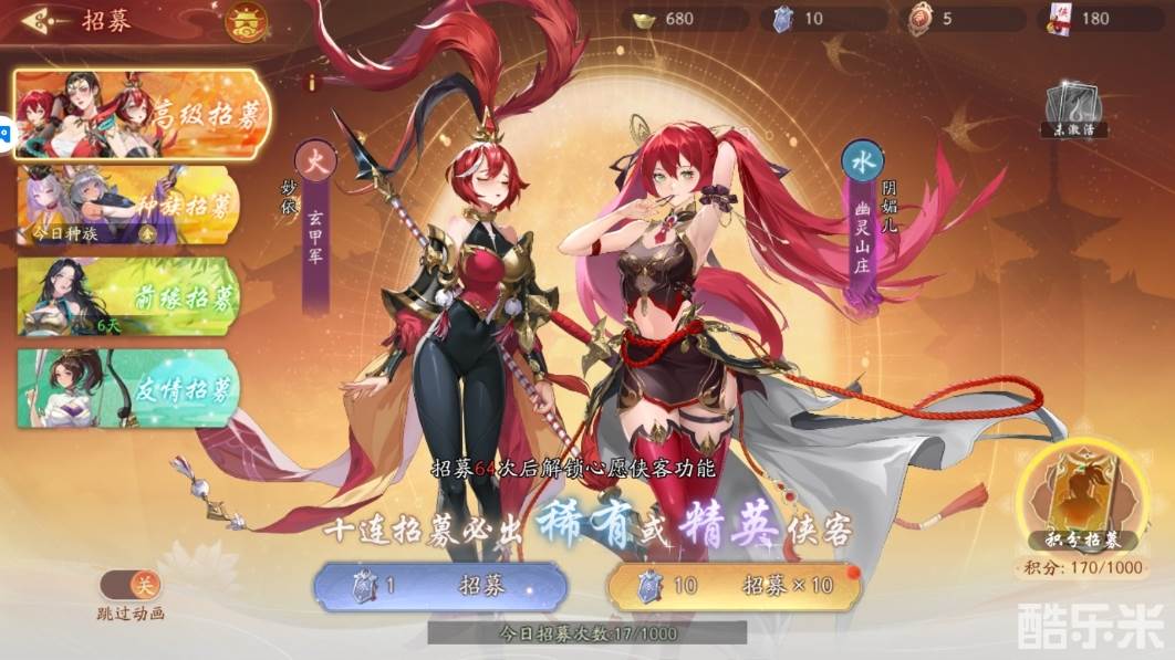 2、我们可以通过十连招募、高级招募以及友情招募等方式获得稀有和精英侠客