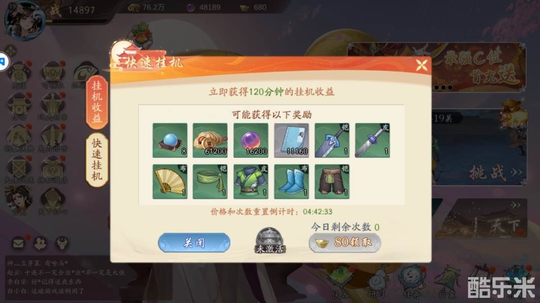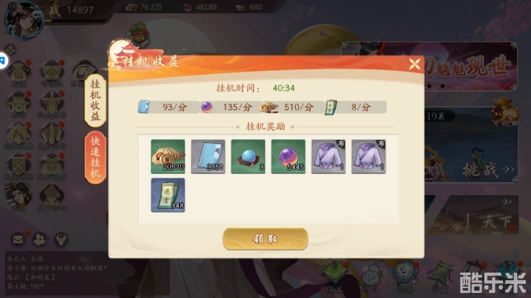 7、通过快速挂机也可以轻松获得挂机奖励,这样就可以轻松提升等级了