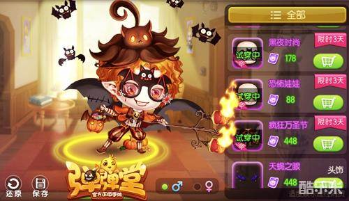 第七大道《弹弹堂》页游原班人马倾情打造,腾讯首款多人对战弹射游戏《弹弹堂手游》新版本已超燃上线,爬塔闯关,一弹入魂!限时最后3天,万圣节限定时装“鬼怪套装”即将绝版下架。由俏皮的南瓜魔怪、黑猫精灵、吸血鬼小妖等主题单品组成的万圣鬼怪套装,你真的忍心不买吗?