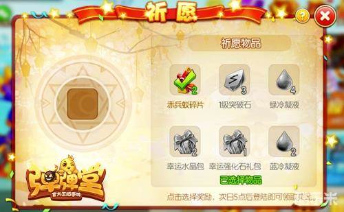 从今天开始,叫醒你们的不再是闹钟,而是愿望实现的幸福感啦~《弹弹堂手游》“祈愿玩法”已经正式上线,玩家可在游戏主界面右上方的“福利”中找到祈愿玩法的按钮。祈愿界面有坐骑碎片、幸运礼包、消耗素材等共计6种不同物品供玩家选择,祈愿完成后次日可领取愿望物品哟~