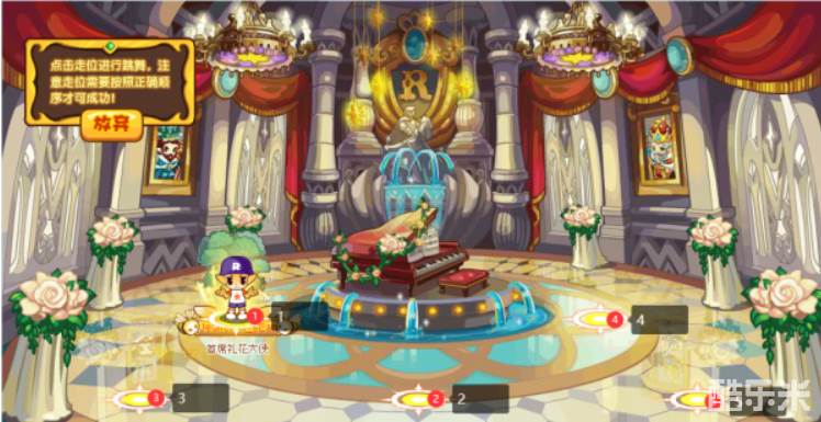 2.拿到门票后就前往舞会厅找到白眉小亚进行跳舞吧,每个时间段播放的音乐不同,所对应的舞蹈走位也会有所区别,届时留意观察即可: