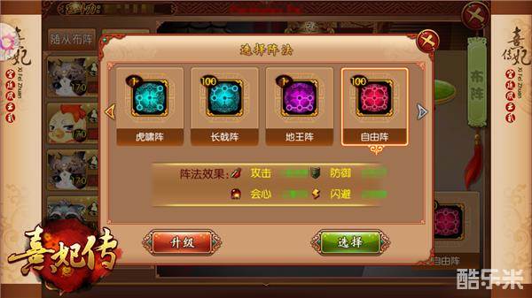 古代作战讲究作战队形,放在《熹妃传》的宫斗中同样适用。宫斗布阵首要考虑阵型,观敌方阵容选择最合适的阵法,方能克敌制胜。除“天罡”、“长蛇”等12种基础阵法外,还有一种隐藏阵法——“自由阵”,只需修习任意基础阵法至满级便可开启,于3x3方阵内任意排兵,而阵法属性亦可自由养成至最为契合的状态。