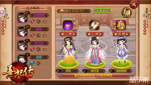 除了六位上阵人选需安排外,小主们所抚养的小皇子也将降临在宫斗战场上,作为现场临时应援。战前,小主至多可安排三位皇子上阵,回合开始时发动皇子技能。如此一来,如何安排皇子技能顺序便成了关乎战局的抉择。这一点需要小主根据敌我双方阵容来提前预判,与随从怒气大招配合释放。如若头脑实在不够用,就只好看脸啦!