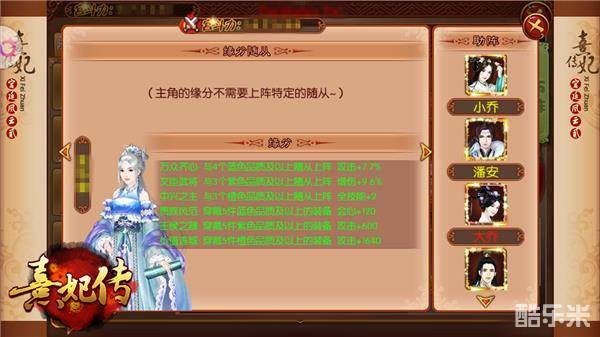 前有得力战将上阵宫斗,后有萌娃皇子临场支援,小主们的晋升路途应能顺遂很多。而韩信将兵多多益善,或能再得友人相助便如锦上添花。《熹妃传》宫斗布阵中特设后援位置,小主可安排上阵随从的宫廷有缘人前来助阵,从而触发上阵随从的缘分效果,上阵宠物亦可唤两位萌宠好友支援,增进实力。新人小主常将后援席位遗忘,但其实这也是布阵学问中极为重要的一个部分,能否激发最大宫斗潜力还得看他们呢!