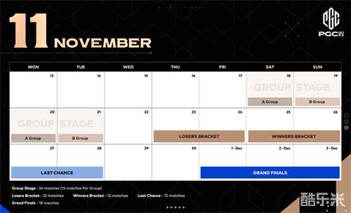 总决赛阶段:12月1日-12月3日,在为期3天的时间里,经过重重厮杀而出的16强将进行终极对决,通过每天6场比赛,来决出本次PGC2023全球总决赛的冠军!