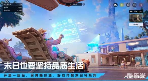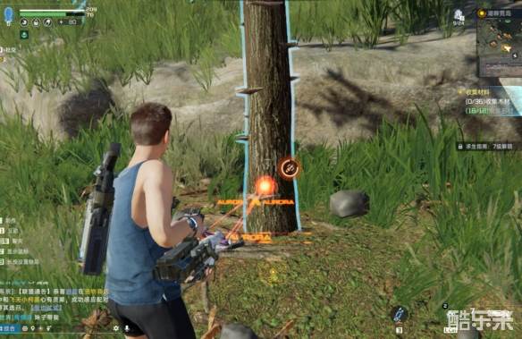 游戏中的建筑和采集都有科幻元素,在这里,采集是用一把万能枪进行,无论是树还是石头,只要一射,便能采集。