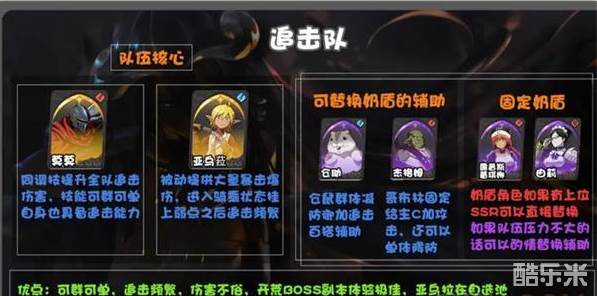 优点:是AOE打击能力强,平民阵容,成本极低,阵容核心全是送的,前期熬过后期飞升。缺点是对单能力太弱,小迪需要专武,BOSS副本表现略差。