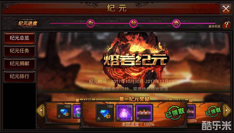 纪元,是考验一个军团默契程度,团结的系统。本次纪元是熔岩纪元。根据卷宗上的记载,玩家们需要探索神秘的地底熔岩部落,在这里有着多样的收集任务以及丰厚的奖励,等待各位玩家的到来。