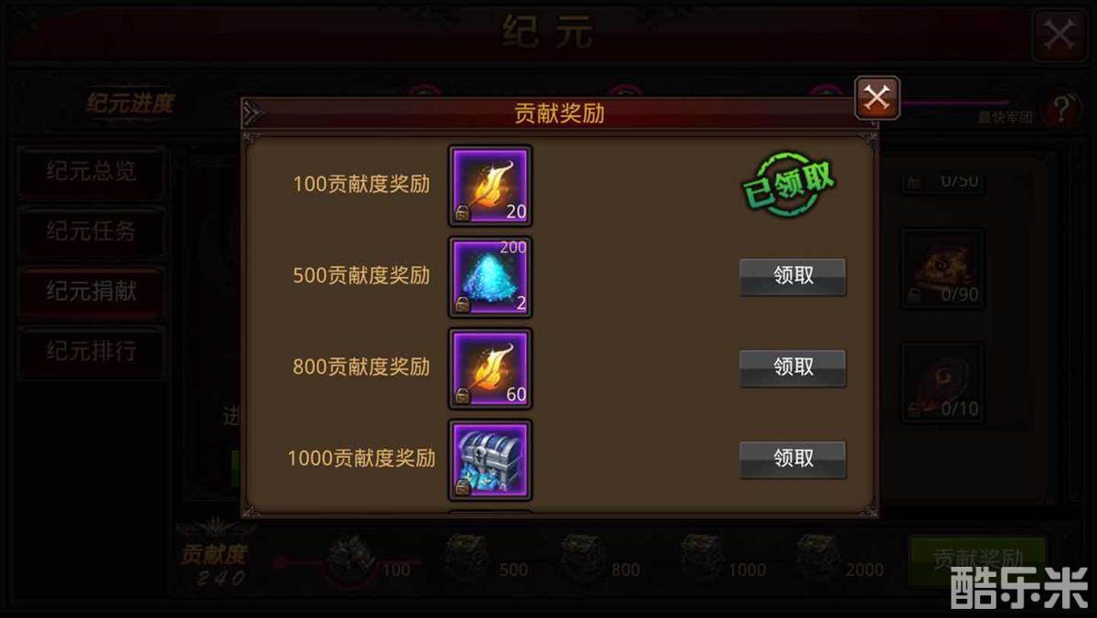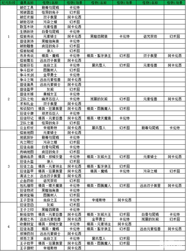玩家在击杀各个地区的魔物时会有概率获得需要捐献的纪元道具,捐献物品后可以帮助军团完成纪元任务,捐献纪元道具不仅可以帮助军团的纪元进度得到提升,玩家个人也可以获得贡献度,贡献度达到要求后,可以领取相应的贡献度奖励,本次纪元活动的捐献道具掉落的地点分别是:卡伦特,幻术园,阿卡伦西。
