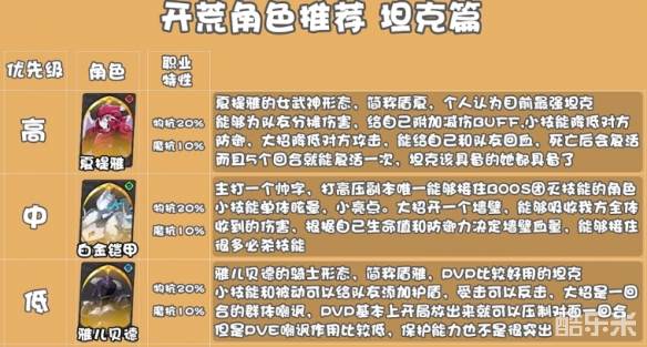 下面由酷乐米纳萨力克之王运营组带来的纳萨力克之王手游刚开服不少玩家还在摸索,但是不少小伙伴还不清楚纳萨力克之王坦克的梯度,推荐玩家抽取的角色,更多详细内容在这篇纳萨力克之王坦克角色推荐,一起来看看吧。