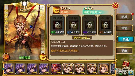 绿色技能【火焰乱舞】必定击倒敌人,孙悟空的控制力度得到增加;紫色技能增加免伤,孙悟空的生存能力也得到了一个档次的提升。