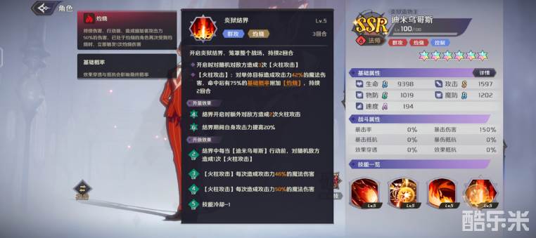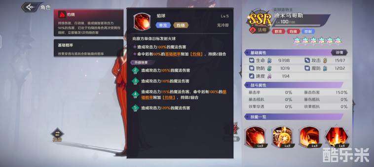 -[火柱攻击] :对单体目标造成攻击力42%的魔法伤害,命中后有75%的基础概率附加[灼烧] ,持续2回合