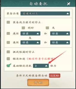 在锻造的右侧还有个自动委托的按钮,玩家可以点击并且根据自身需要进行自动锻造