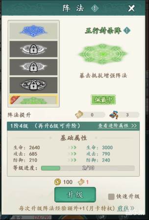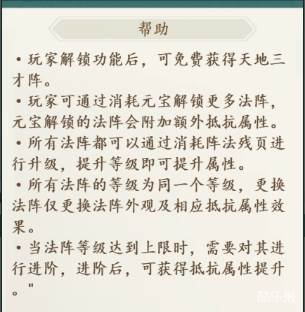 在玩家解锁阵法之后,可以用元宝学习不同的阵法,每种阵法都具有不同的效果,玩家可以根据自身需要装备阵法并提高阵法等级完成阵法进阶