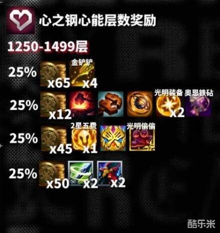 8、1250—1499层:金铲铲、光明装备、金币、铁砧、2星五费卡等奖励。
