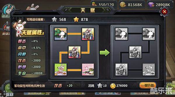 自己的征梦部队增加战斗力。天赋加成是跟随玩家而非兵种,就算亲们更换上阵的兵种,天