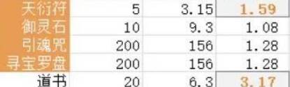 换算比例:天衍符=引魂咒(召唤令)=寻宝罗盘=其他。