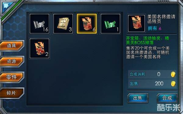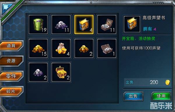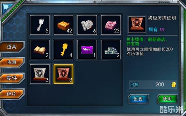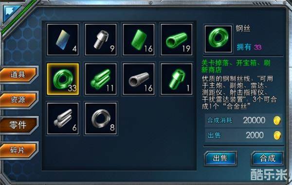 零件:零件是用来升级战舰部件所需要的零件,零件也是需要管卡掉、开宝箱和商店购买获得。在背包的零件栏里够查看你所具有的零件和数量。