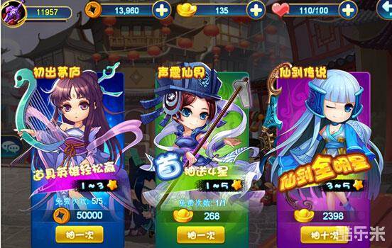 主要产出1-3星角色,每天有5次免费机会,免费机会用完后需要消耗50000铜钱/次才能继续抽取,抽取时间间隔为10分钟。