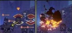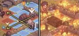 3、烈酒桶与油灯接触障碍物后造成伤害,点燃5*5地面,造成持续伤害,让己方远离燃烧范围。