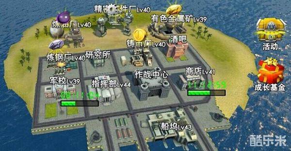 如图所示的是游戏里所有需要升级的建筑了,最核心的两个建筑就是之一为指挥部,优先升级指挥部,才可以升级其他建筑,即其他建筑不可以高于指挥部的等级。