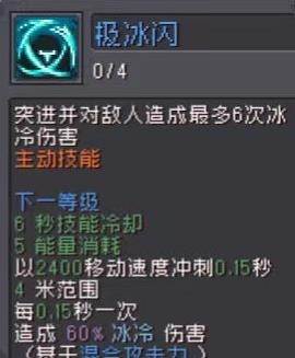 1、极冰闪:向前突进并对路径上的敌人造成多次伤害。