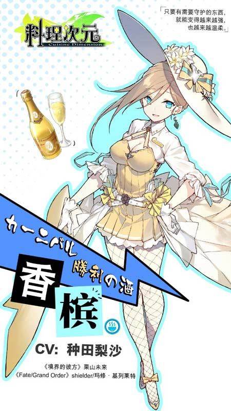 目前,《料理次元》已汇聚钉宫理惠、花泽香菜等十余位日本顶级CV,将游戏中各个食灵的特色演绎的淋漓尽致,绕梁三日,让人记忆犹新,回味无穷。而第二期日文声优阵容在数量和质量上不遑多让!相信大家对《Fate/Grand Order》并不陌生,其中人气角色玛修·基列莱特的CV为《料理次元》食灵香槟配音,玛修·基列莱特那小清新的声线与香槟恬静的性格将碰撞出如何强烈的火花,另一位日本CV将为我们演绎一个怎样的酸梅汤?让我们拭目以待!
