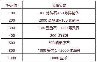 【活动内容】活动期间,每消费1000金币,即可获得100好运值,累计获得好运值可开启奖励宝箱。