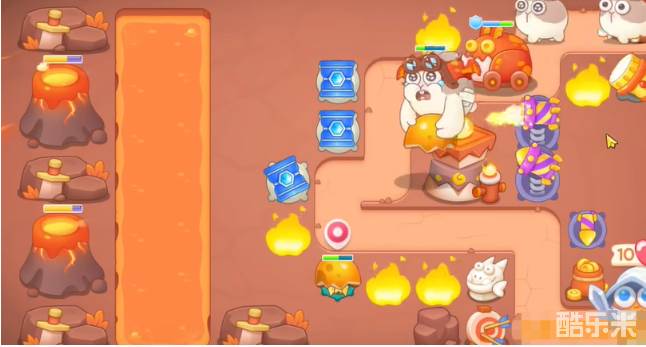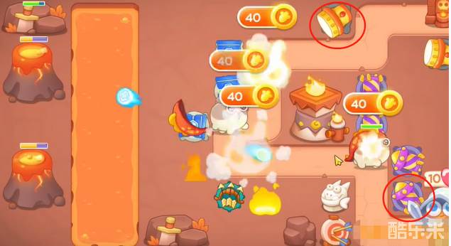7、冰锥塔打左边火山打的差不多,建立烟花和多重箭,把剩余火山清理。