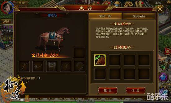 坐骑也就是我们常说的马对于战力的提升也不容忽视,“千里走单骑”听起来就很炫酷啊!坐骑在游戏中会改变角色的移动速度。每个坐骑都拥有相对应的外观。坐骑分为骑乘时可以攻击、不可攻击两种类型。不同坐骑出战后增加的角色属性不同。不同的坐骑可以通过不同的途径获得。我们在25级时系统就会开启【枣红马】主线任务,完成后可获得枣红马一匹。