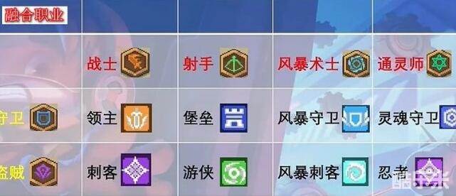 1、战士(初始职业)+守卫(初始职业)=领主(融合职业)。