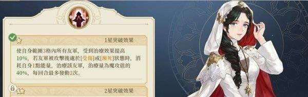 同时也让各位挂自动的翻车几率大大降低,是前期开荒阶段必带的一名奶妈角色,十分建议大家开局直接拿下。