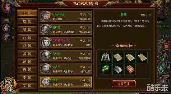 《征途》BOSS刷新地点及掉落介绍:兽王篇