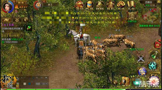 兽王即为百兽之王,长着虎豹的外形,夹杂在一群老虎中间让人很难辨认,不过BOSS还是会有BOSS的风采,它头顶的名字为绿色,供玩家辨认。兽王的攻击并不低,想顺利击杀的话,可以与家族成员一起组队前往,彼此分担伤害,一起输出。需要注意的是,敌国我玩家也能看到本国BOSS刷新时间,建议可以拉着兽王到僻静处,减小风险。