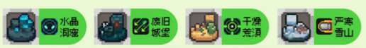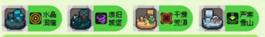 1、装备:水晶溶洞、废旧城堡、干燥荒漠、严寒雪山。