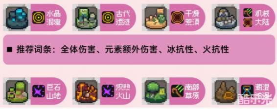 2、推荐词条:全体伤害、元素额外伤害、冰抗性、火抗性。