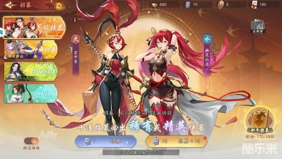 2、我们可以通过十连招募、高级招募以及友情招募等方式获得稀有和精英侠客