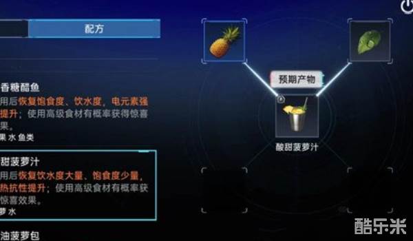 星球重启酸甜菠萝汁怎么制作呢?做酸甜菠萝汁需要用什么材料呢?接下来,酷乐米运营组将为您提供一份关于这款游戏中的酸甜菠萝汁的详细制作方法,感兴趣的朋友可以来看一看,对您会有帮助。