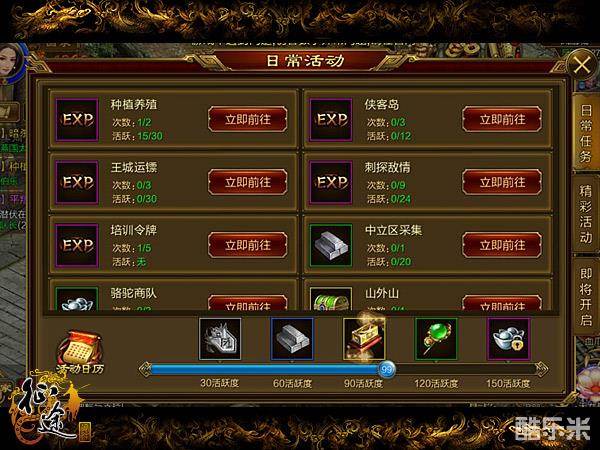 在一些趣味日常玩法中,我们应该靠智慧获取更高的经验收益。如智力答题,答对题目越多经验越丰富;魔幻迷宫和自行车赛这种有时限性的日常,其排名越靠前,经验也越高,想获得最高排名首先要即时参与,其次要善于利用道具与观察性,以智取胜。“四大疑案”这个日常比较有意思,齐集《妖书》、《梃击》、《红丸》、《移宫》四大疑案书,可召唤出更多的经验值哟!
