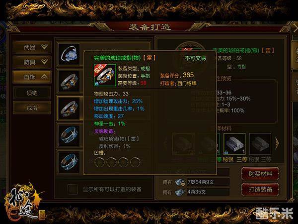 《征途手机版》中,玩家除了可以通过打BOSS掉极品之外,还可以自由锻造装备。锻造装备时,使用不同的材料可以锻造不同的装备部件,使用的材料品质越高,越能锻造出高属性极品装备。装备打造时,只有4等以上材料可锻造出附带灵魂锁链的极品装备,使用4等材料灵魂锁链出现概率相对较低,但5等材料及以上品质必定能让装备具有灵魂锁链特性。