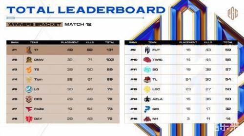 最终,17战队、DNW和T5分别名列胜者组前三,并将与天霸电子竞技俱乐部、LG、CES、FAZE、DAY一起晋级总决赛。