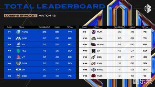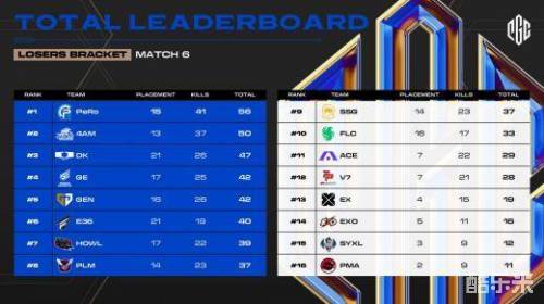 次日,4AM屡屡遭遇强敌,收入囊中的积分相对较少。而PERO、GERN、SSG、V7和PLM都在不同的对局中发挥了良好的优势,通过多打少,或者在混战中策略运用得当,分别吃鸡。